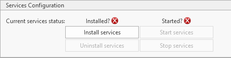A tooltip shows the detailed status of the services if you hover your cursor over "Installed?" and "Started?".