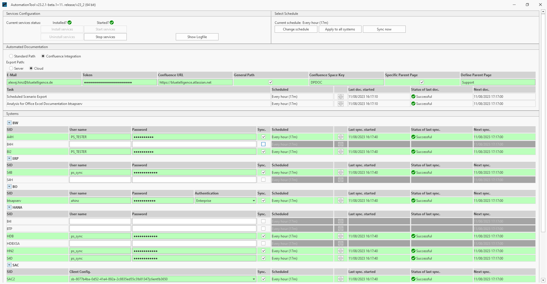 A scheduled SAP-Sync and the Scenario export are carried out in the background with the following Windows-Services: