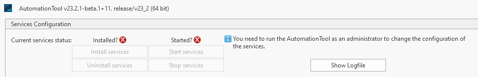 Admin rights are required to install the Windows-services of the AutomationTool.