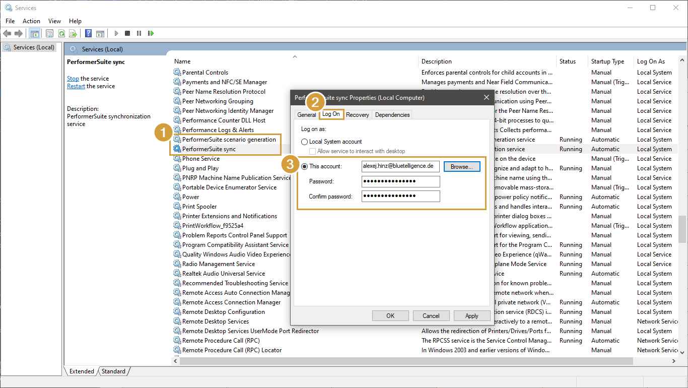 You can find the installed PerformerSuite Services in the Windows-Services overview: