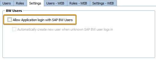 In case you don't want to allow a login into the Performer Suite with an SAP Users you can forbid this in Settings > User and Roles Desktop in the tab "Settings":