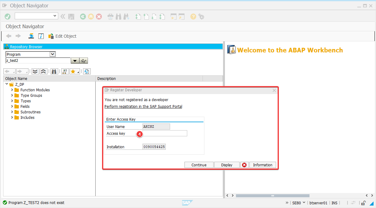 Proceed with the process, until the SAP GUI asks you to enter your Developer Key.