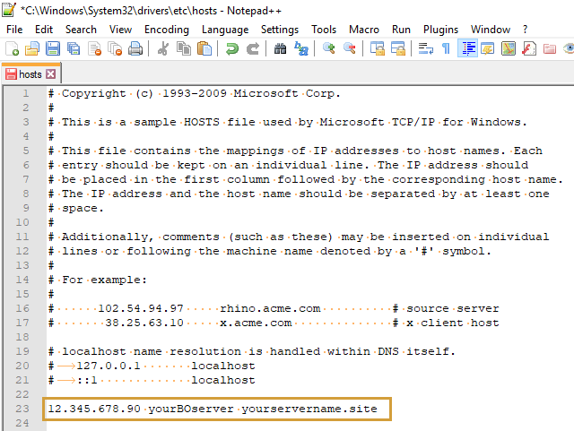 If the mapping is correct, the host name http://yourservername.site:6400/biprws can be used in the URLs instead of IP http://12.345.678.90:6400/biprws.