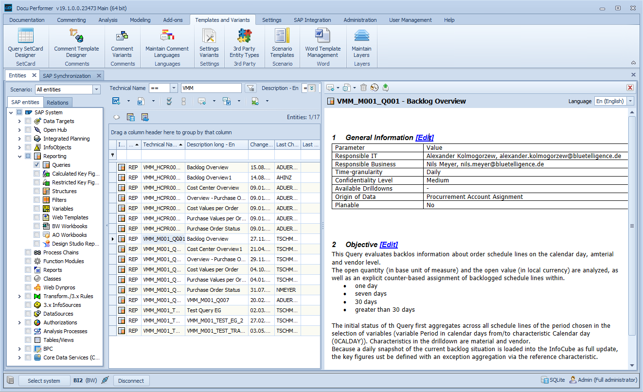 The commenting function (BW Commenting, BO Commenting, HANA Commenting, BPC Commenting) represents besides Documentation one of the key components of the Docu Performer. It enables, for instance, the company-wide sharing, cross-system collection, and especially the centralized capturing of knowledge related to SAP objects.