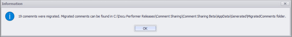 Thereby the comment from one landscape with the last modification date is adopted to the relevant object. In order to ensure that no comments will be lost, all unused ones are exported as a Word document to the Docu Performer directory \AppData\Generated\MigratedComments. There, the files are sorted by system types and landscapes. Additionally, the file AppData\Generated\ MigratedComments\MigratedCommentsOverview.xlsx provides an overview of all no longer in use and exported comments. Where appropriate, those can be used to complement comments in the Docu Performer. When conducting a migration, the following information will be displayed after the database update.